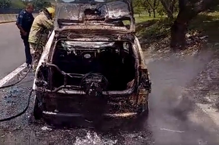 Sin embargo, en cierto momento empezó a arder, por lo que los ocupantes orillaron el vehículo y bajaron de inmediato.