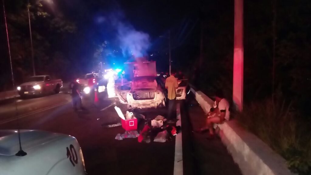 ACAPULCO. — Un vehículo tipo Mazda 3, en el que viajaban seis turistas del Estado de México se incendió anoche por un corto circuito, sobre la avenida Escénica de este puerto.