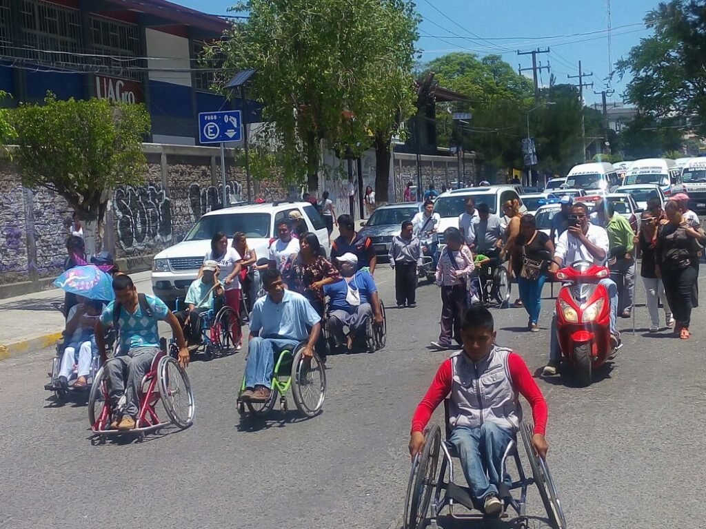 El recorrido comenzó minutos después de las 12:00 horas, con un contingente de personas con discapacidades que en su mayoría utilizan sillas de ruedas para trasladarse, mismos que tienen dificultades para moverse en la vía pública por la falta de adaptaciones para las sillas de ruedas.