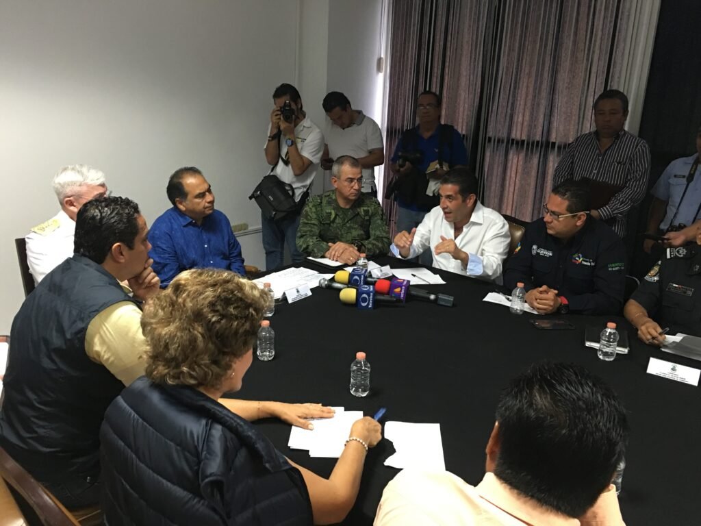 En la reunión realizada en las instalaciones de la Base Naval, asistieron el director general de Gestión de Riesgos de Coordinación Nacional de Protección Civil, José María Tapia; los comandantes de la Novena Región Militar, Alejandro Saavedra Hernández y de la Octava Región Naval, Juan Guillermo Fierro Rocha.