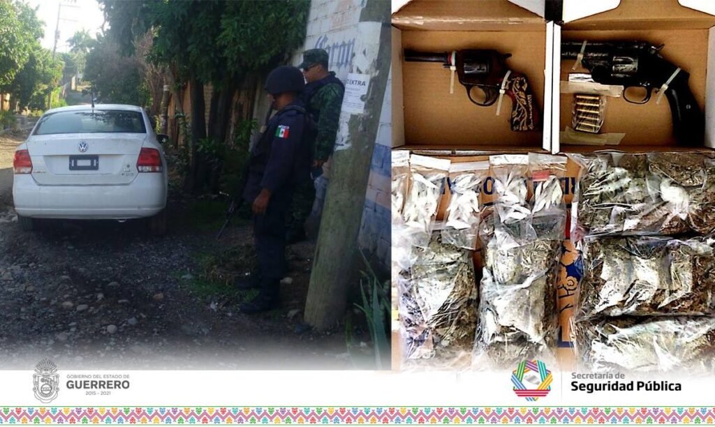 Policías estatales y efectivos castrenses pertenecientes a la Base de Operaciones Mixtas, Urbanas y Suburbanas (BOMUS-Ixtapa), aseguraron un vehículo identificado con reporte robo y armamento que fue localizado en su interior, frente al panteón de la comunidad de San José Ixtapa, municipio de Zihuatanejo de Azueta.