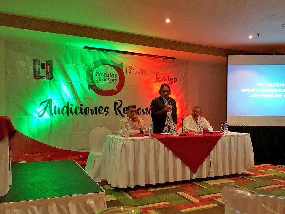 ACAPULCO.— El presidente del CDE del PRI Guerrero, José Parcero López, inauguró junto con el presidente del Icadep filial Guerrero, César González Guerrero, en esta ciudad las audiciones regionales de los “Círculos de Debate” del Instituto de Capacitación y Desarrollo Político (Icadep), con los jóvenes de la Escuela Nacional de Cuadros de la entidad de las regiones de Acapulco, Centro, Norte, Costa Grande y Costa Chica.