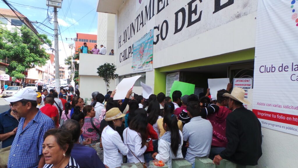 Fue cerca de las 11:00 horas cuando un contingente de unas 80 personas arribó al exterior del Palacio del Municipal quienes bloquearon la entrada principal y mostraron cartulinas para exigier ser atendidos.
