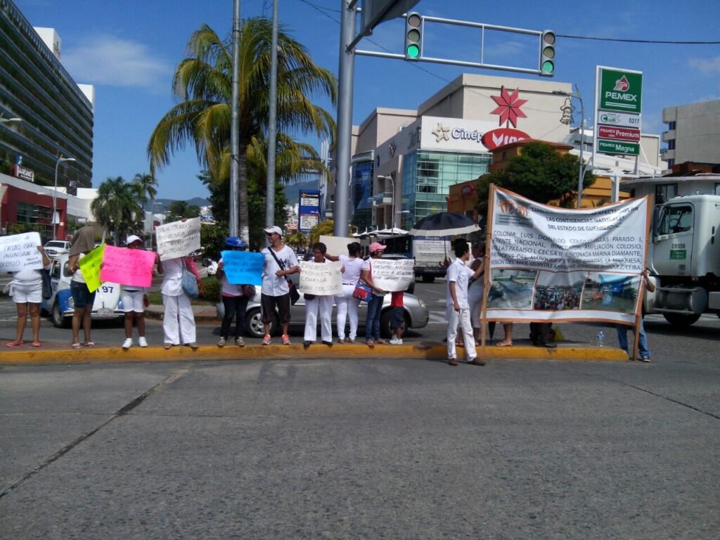ACAPULCO.— Damnificados por las inundaciones causadas por los meteoros ‘Ingrid’ y ‘Manuel’ del 13 de septiembre de 2013, protestaron este martes para denunciar que al cumplirse tres años de las afectaciones en la zona Diamante, no han recibido apoyo gubernamental.