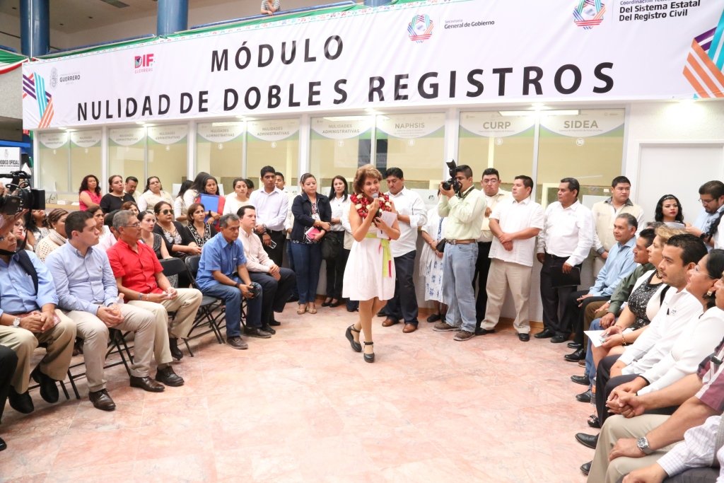 “Con la puesta en marcha de los módulos de nulidad de doble registro”, se da respuesta a una demanda ciudadana de más de 30 años” aseguró la presidenta del DIF Guerrero, Mercedes Calvo de Astudillo al inaugurar los módulos que permitirán realizar el trámite en menor tiempo y costo.