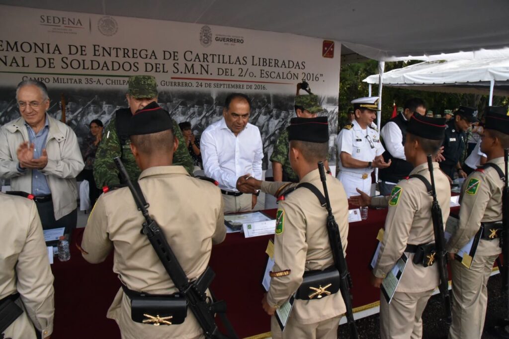 El gobernador estuvo en las instalaciones de la 35 Zona Militar en esta capital donde atestiguó la ceremonia de clausura del cumplimiento del servicio militar nacional de más de 108 jóvenes y donde estuvo acompañado del comandante de la Novena Región militar, Alejandro Saavedra Hernández; del presidente del Tribunal Superior de Justicia (TSJ), Robespierre Robles Hurtado; del secretario de Gobierno, Florencio Salazar Adame y del secretario de Seguridad, Pedro Almazán Cervantes.