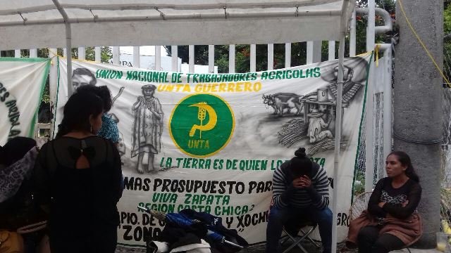 Los campesinos afiliados a la Unión Nacional de Trabajadores Agrícolas (UNTA,) quienes protestaron el pasado martes en las oficinas de la Secretaría de Agricultura, Ganadería, Desarrollo Rural, Pesca y Alimentación (Sagarpa), mantienen “tomado” el edificio delegacional.