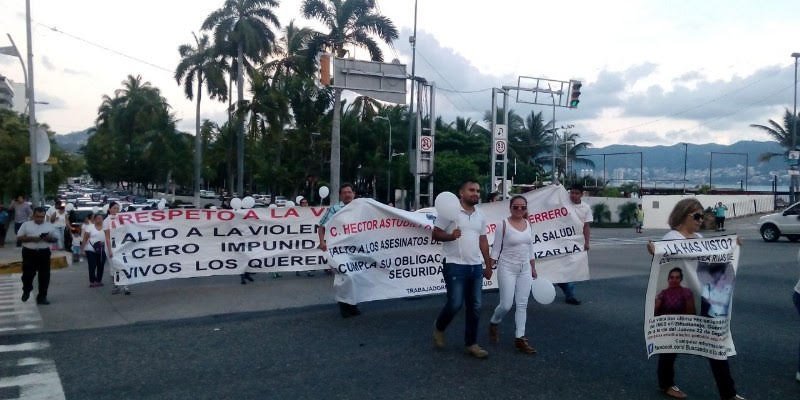 ACAPULCO.— Familiares, amigos y conocidos de la directora de micro-zona del IMSS en la Costa Grande, Adela Rivas Obe marcharon sobre la avenida costera Miguel Alemán para exigir su presentación con vida, a 14 días de su desaparición.