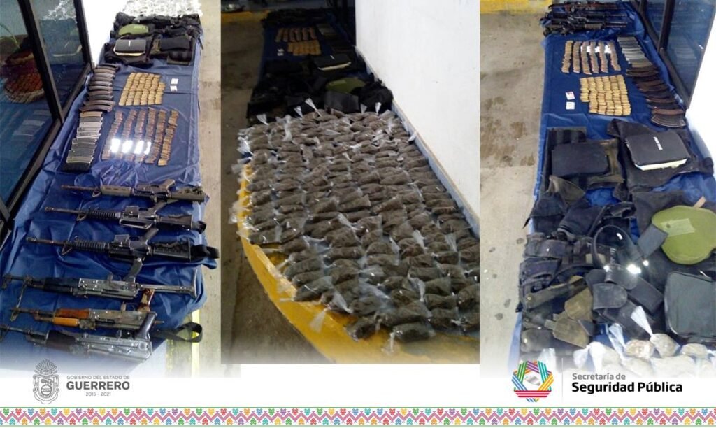 También fueron decomisados tres fusiles AK-47 (mejor conocidos como “cuernos de chivo”) y tres AR-15; 331 cartuchos calibre 7.62×39; 290 cartuchos útiles calibre .223; tres chalecos antibalas; un chaleco táctico; una “pechera”; una fornitura; dos de las llamadas “mariconeras”; 200 bolsitas de plástico con marihuana de un peso aproximado de 3 kilogramos.