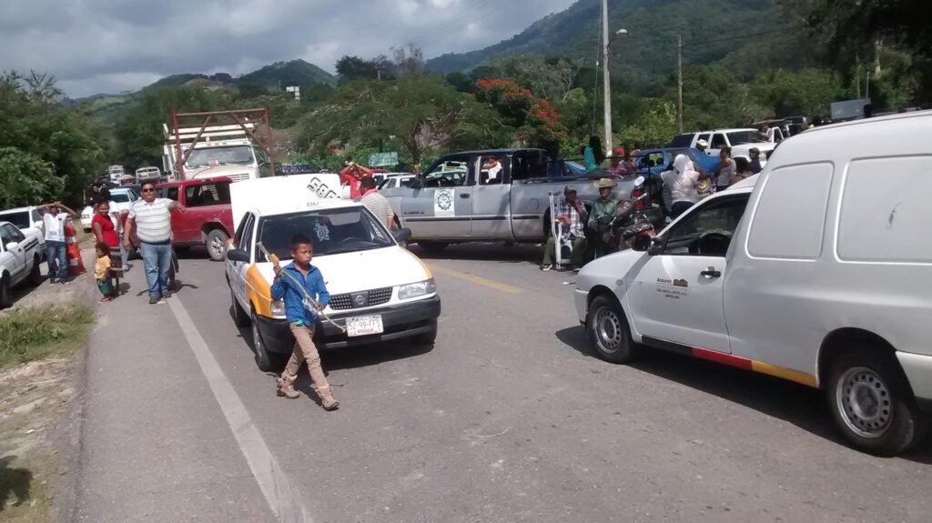 Policías comunitarios del Frente Unido para la Seguridad y el Desarrollo del Estado de Guerrero (FUSDEG) y pobladores de la comunidad de El Ocotito, municipio de Chilpancingo, bloquearon de manera intermitente la carretera federal México-Acapulco.
