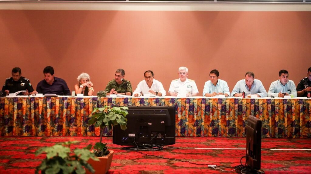 ZIHUATANEJO.— El grupo de Coordinación Guerrero encabezado por el gobernador Héctor Astudillo Flores sostuvo una reunión con empresarios y prestadores de Servicios Turísticos de este binomio de playa a quienes presentaron parte de los resultados del operativo de seguridad que se instaló a través de la Base de Operaciones Mixtas y las nuevas acciones que se emprenderán para inhibir aún más los índices delictivos.