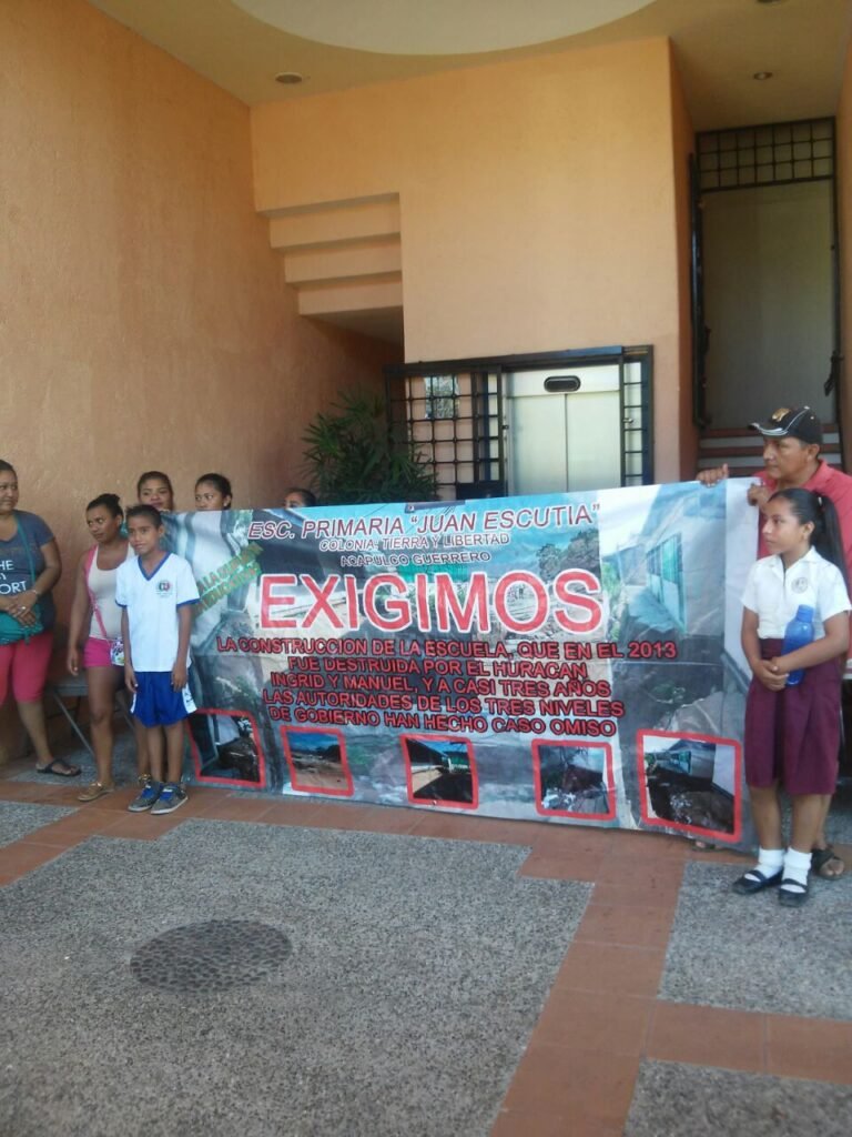 “Estamos en esta lucha porque hace tres años nuestra escuela fue destruida por un huracán y antes ya había sido afectada por un sismo”, refirió el dirigente durante la protesta.