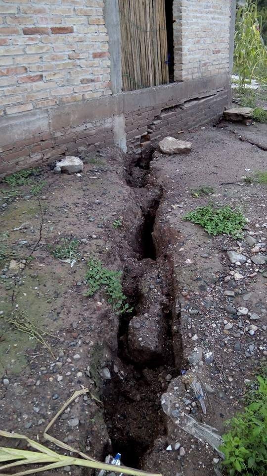 Desde el pasado 20 de agosto, los pobladores se percataron que se estaba abriendo una grieta y se presentaban hundimientos, lo cual sigue causando serios daños a varios terrenos.