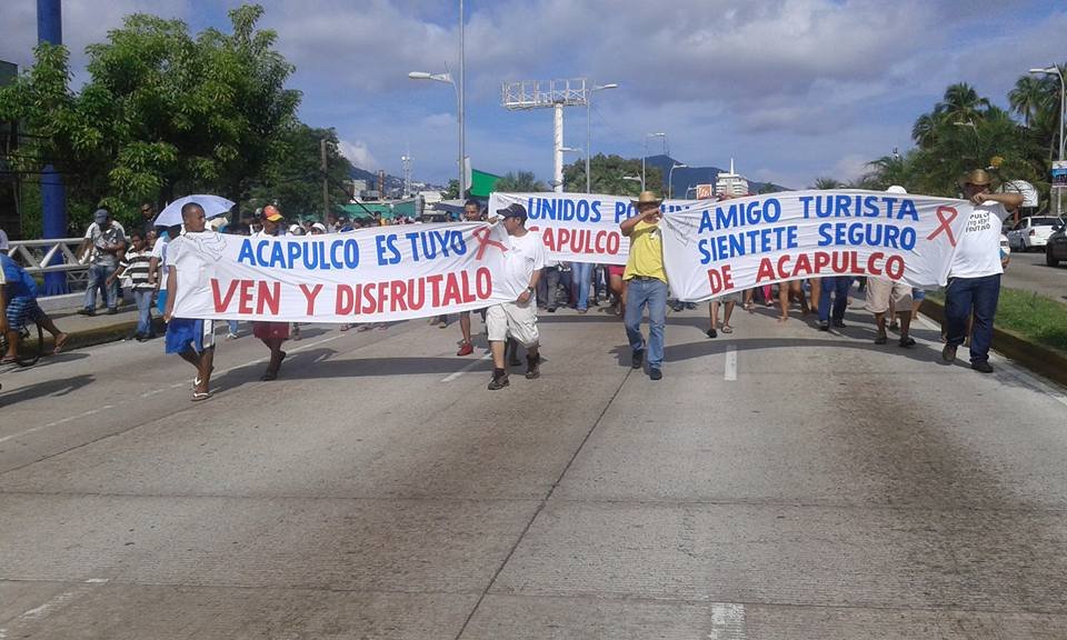 “Amigo turista siéntete seguro de Acapulco. Acapulco es tuyo, ven y disfrútalo. Unidos por un Acapulco mejor”, eran las frases que contenían las lonas que portaban durante la movilización.