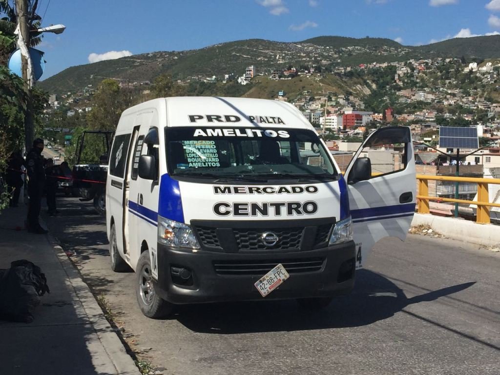 Alrededor de las 14:50 horas, un hombre conducía la unidad del servicio público marca Nissan, color blanco con franjas azules, de la ruta PRD-Mercado, marcada con el número económico 704, con placas de circulación 42-88-FPC, en la que iban varios pasajeros.