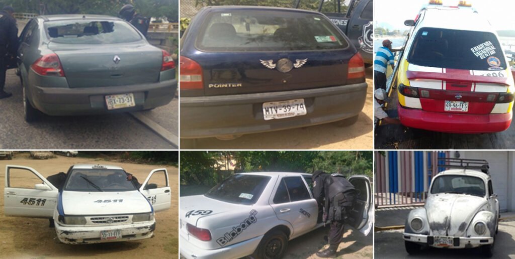 En tanto, el miércoles 19 de octubre, elementos del Primer Batallón de la Policía Estatal Acreditable, encontraron en la avenida Juan N. Álvarez de la colonia Llano Largo, un taxi de la marca Nissan, tipo Tsuru, color blanco, número económico 459, placas de circulación 59-83-FFR del estado que resultó con reporte de robo en el sistema del servicio de emergencias 066 de fecha 19 de octubre del presente año.