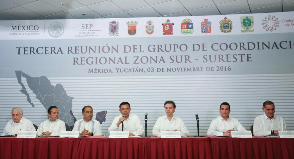 MÉRIDA, Yuc.— El gobernador de Guerrero, Héctor Astudillo Flores participó en la Tercera Reunión del Grupo de Coordinación Regional Zona Sur-sureste, que encabezó el secretario de Educación Pública, Aurelio Nuño Mayer.