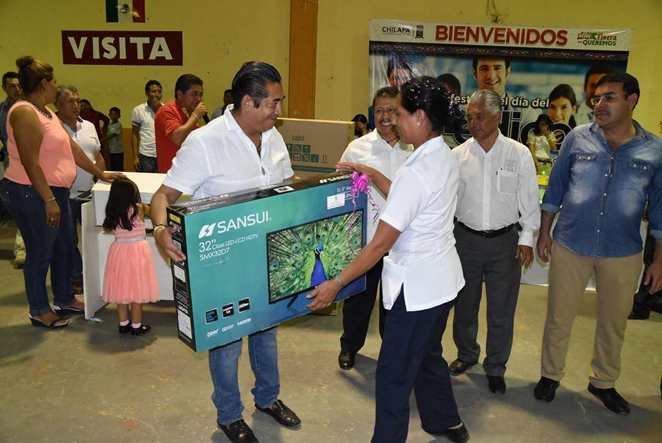 Enseguida los presentes fueron agasajados con una comida y un grupo musical, donde además hubo rifas de regalos en los que destacaron: camas, refrigeradores, estufas, pantallas led, minicomponentes, licuadoras, hornos de microondas, planchas, entre otros.