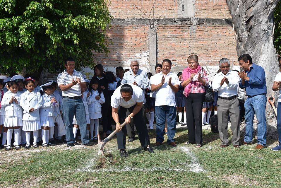 CHILAPA.— Este lunes, el alcalde Jesús Parra García, acompañado por regidores y secretarios, dio inicio de lo que será una cancha de voleibol en el Colegio Morelos, ubicado en esta ciudad.