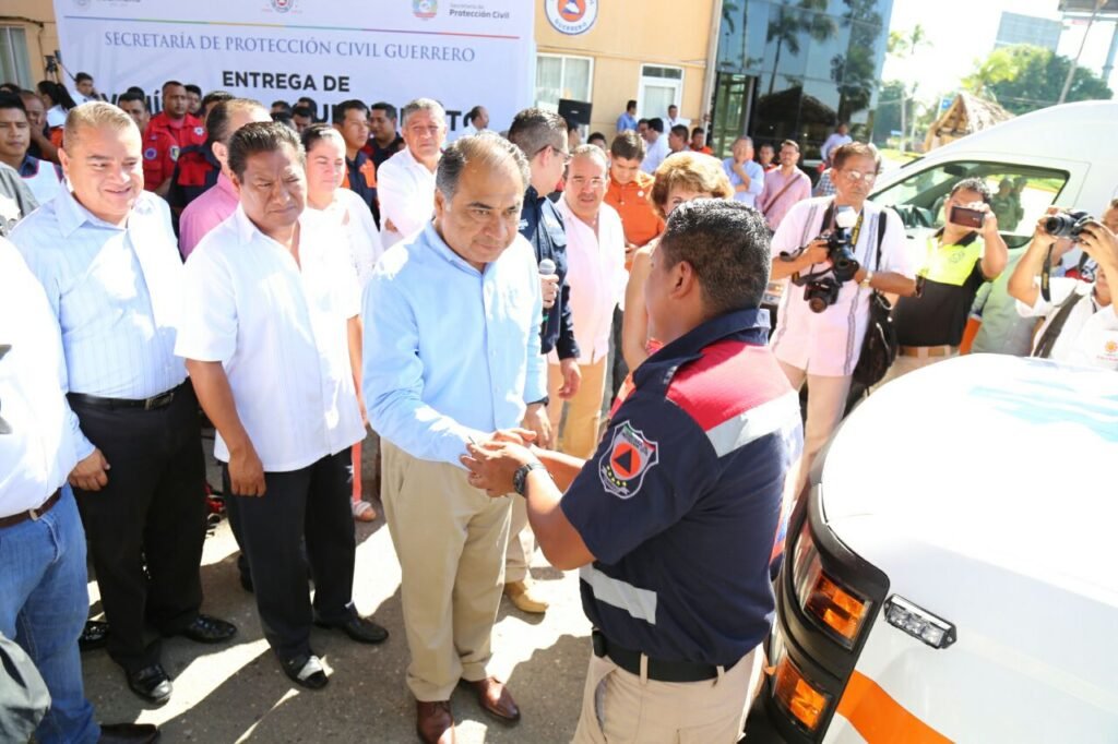 En el evento realizado en las instalaciones de Protección Civil de la Zona Diamante, el gobernador entregó camionetas, motocicletas, cuatrimotos, motobombas, desfibriladores, motos acuáticas y equipo diverso por un monto de más de 13 millones de pesos, para eficientar la protección y asistencia a la población.