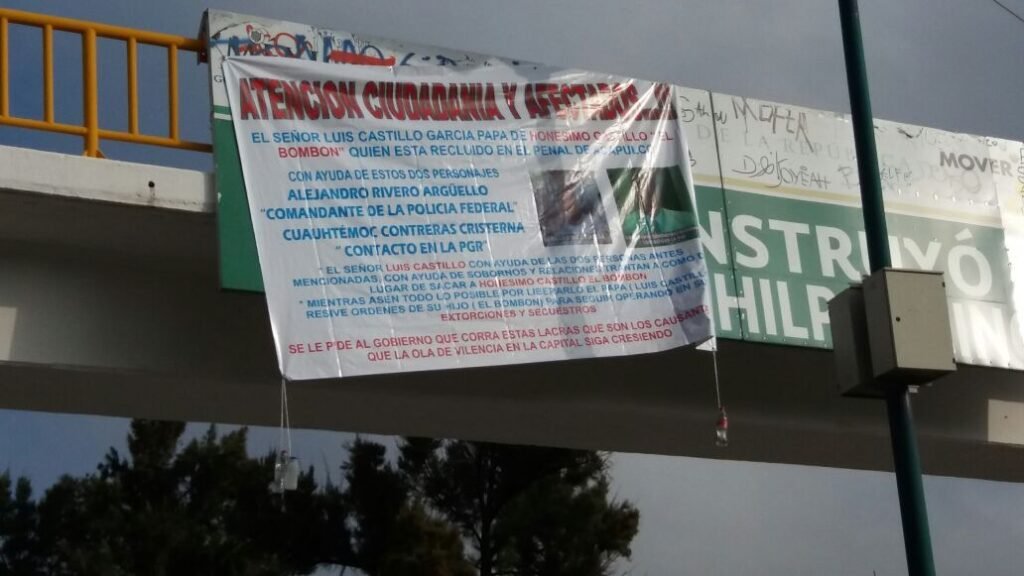 Ayer por la mañana fueron localizadas dos mantas con mensajes en dos puentes peatonales ubicados en el “bulevar “Vicente Guerrero”, una a la altura de la colonia Lázaro Cárdenas y la segunda en el de la colonia San Juan.