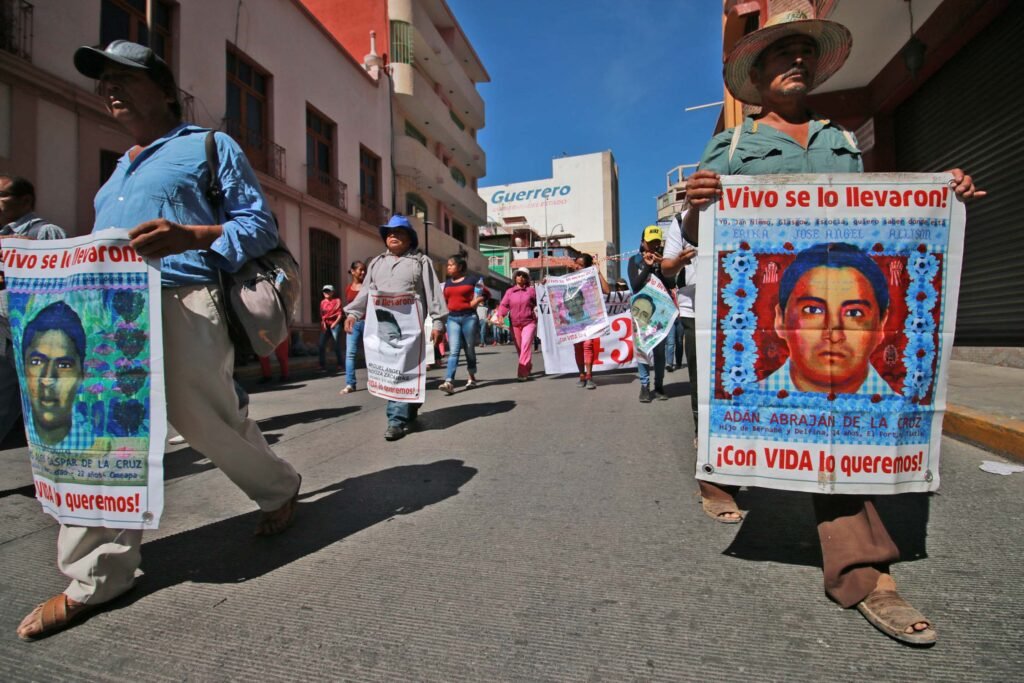 Durante la movilización, los normalistas y organizaciones sociales que los acompañaron corearon consignas para exigir justicia por los dos estudiantes asesinados hace cinco años en el desalojo a la Autopista del Sol y por la presentación con vida de sus 43 compañeros desaparecidos en Iguala hace dos años.