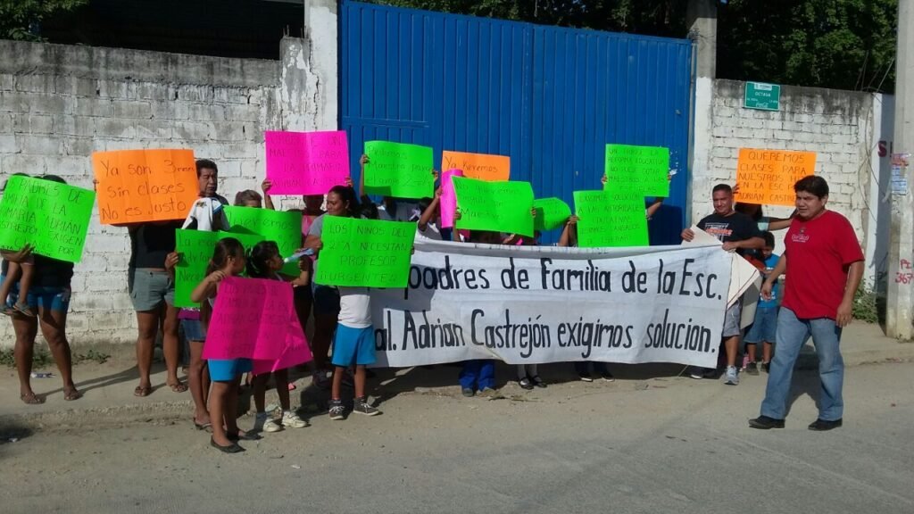 ACAPULCO.— Ante la falta de maestros, padres de familia y estudiantes de la primaria “General Adrián Castrejón” protestaron la mañana de este lunes en el exterior del plantel, en exigencia de que autoridades les den una pronto solución.