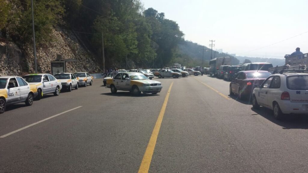 Desde las 10:00 horas, los taxistas estacionaron sus unidades sobre esa avenida, que comunica la zona Tradicional con la Diamante a la altura del hotel Pichilingue, y posteriormente frente a la planta de Pemex de Icacos, mostrando pancartas de repudio contra el incremento a la gasolina.