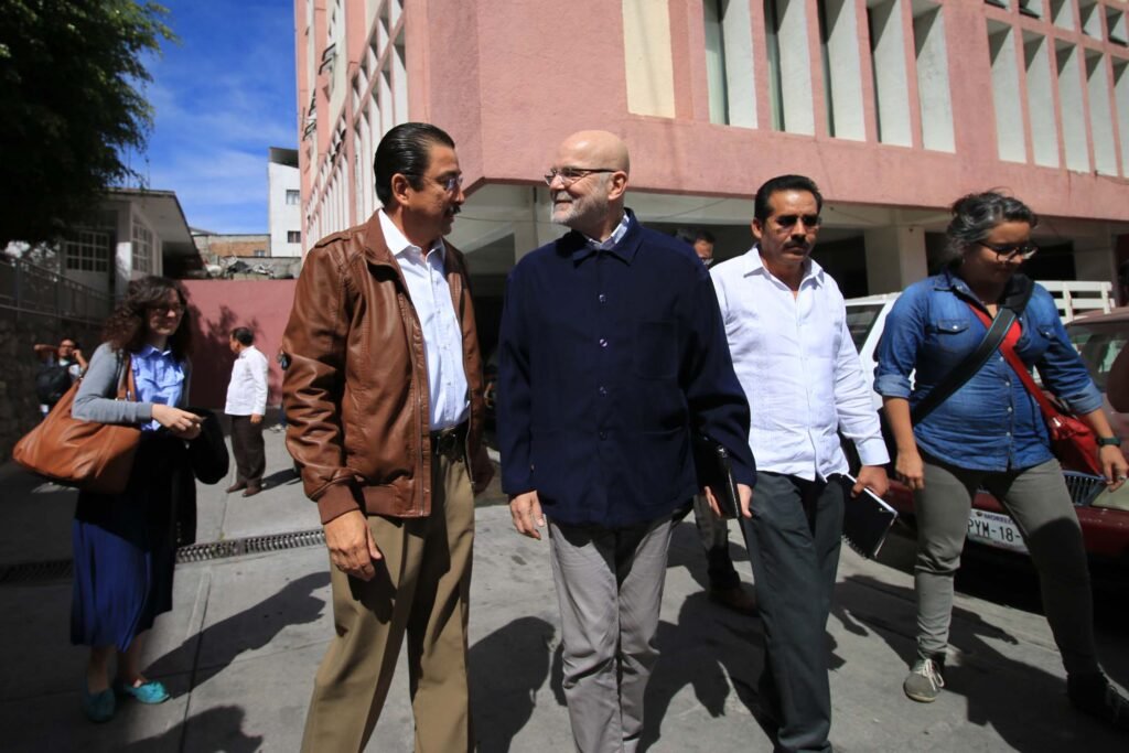 Al mediodía, el relator especial de la ONU se reunió con el presidente de la Comisión Estatal de los Derechos Humanos, Ramón Navarrete Magdaleno, y con los visitadores generales de esta institución: Violeta Parra Reynada, Fernando Esteban Ramírez y Román Jaimez Contreras.