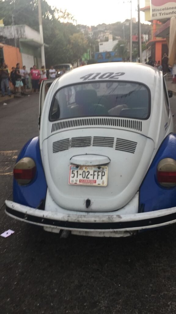 al filo de las 17:45 horas de ayer, el taxista (cuyo nombre se desconoce) manejaba un vehículo de la marca Volkswagen, tipo Sedan, de color azul y blanco, con las placas de circulación 5102-FFP.