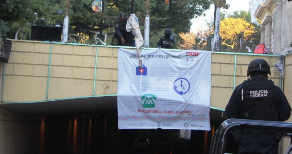 Policías federales, estatales y municipales, se trasladaron de inmediato al lugar y bajaron la manta, en donde un presunto grupo del crimen organizado explican que “tienen la plaza” y que se encuentran en todos lados.