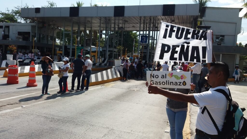 Al llegar a la caseta, los manifestantes dieron paso libre a los automovilistas, quienes lanzaron palabras de aliento: “¡No al gasolinazo!, gritaban algunos.