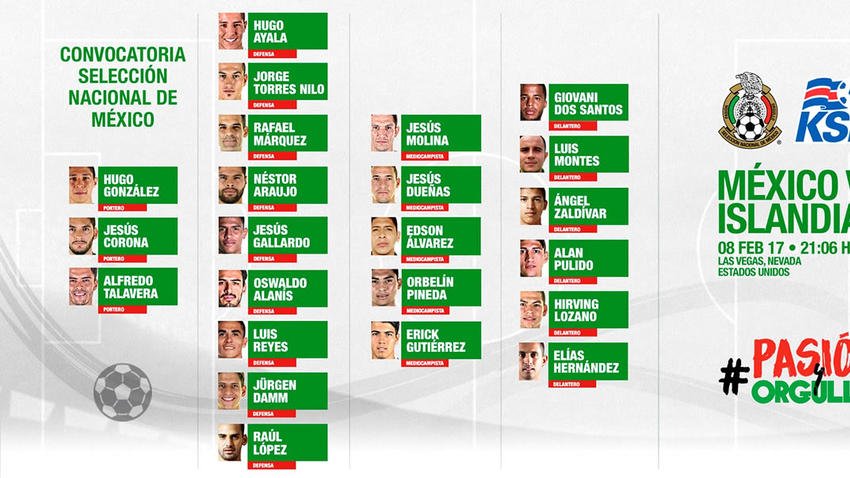 Con un combinado de nuevos llamados y algunos regresos, el estratega de la Selección Mexicana, Juan Carlos Osorio, anunció su lista de convocados para enfrentar el próximo 8 de febrero a su similar de Islandia en Las Vegas, Nevada.