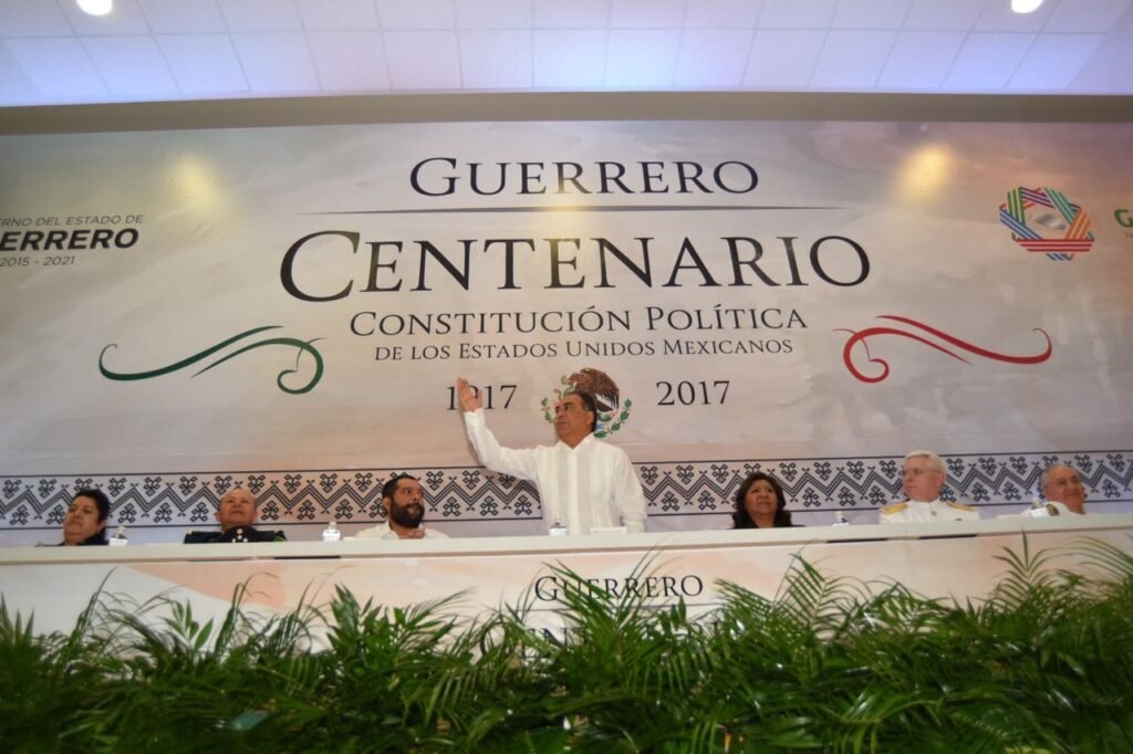 Ante servidores públicos federales, estatales y municipales, senadores por Guerrero, diputadas y diputados federales y locales que acudieron al acto celebrado en el auditorio José Joaquín de Herrera, el mandatario estatal manifestó que a cien años de promulgada la Constitución y que tiene sus antecedentes en la capital del estado, que es el origen del constitucionalismo mexicano: Venimos a celebrar con especial entusiasmo nuestra Carta Magna y en momentos en los que el desprecio, el racismo y la xenofobia resurgen con preocupación, estamos obligados a estar más unidos y fuertes que nunca.