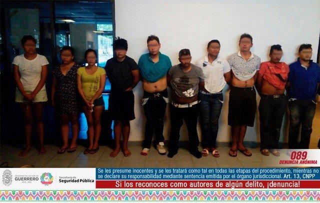 ZIHUATANEJO.— Elementos de la Policía Estatal logaron la captura de 10 probables integrantes del grupo delincuencial “Guardia Guerrerense”, quienes se encontraban en un domicilio particular y tenían en su poder armas de grueso calibre.