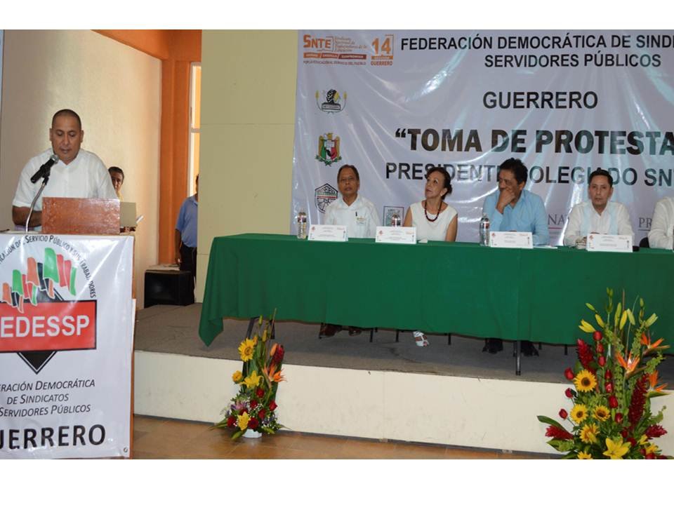 * Preside el dirigente de la Sección 14, José Hilario Ruiz, la toma de protesta del nuevo presidente del Colegiado del SNTE en Guerrero de la FEDESSP