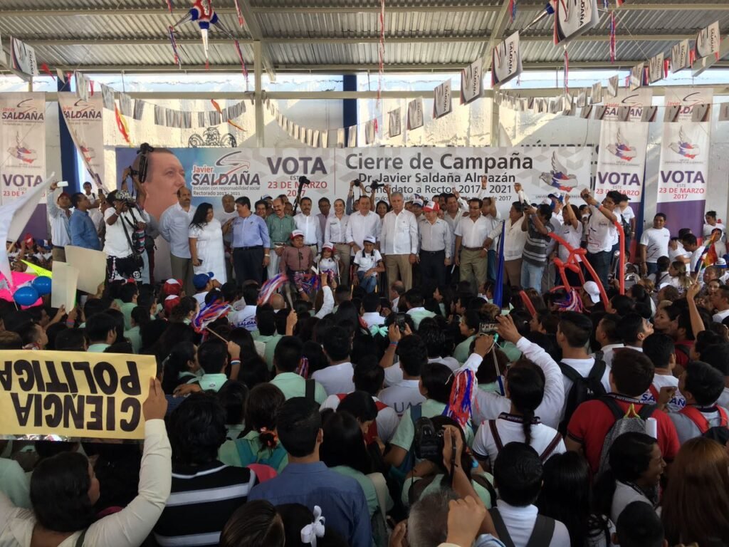 * Al cerrar su campaña rumbo a su reelección, el único aspirante a rector dijo que la universidad “se declara como siempre apartidista, se declara dispuesta a partir del 6 de abril a ayudar y coadyuvar para que este estado sea mejor”