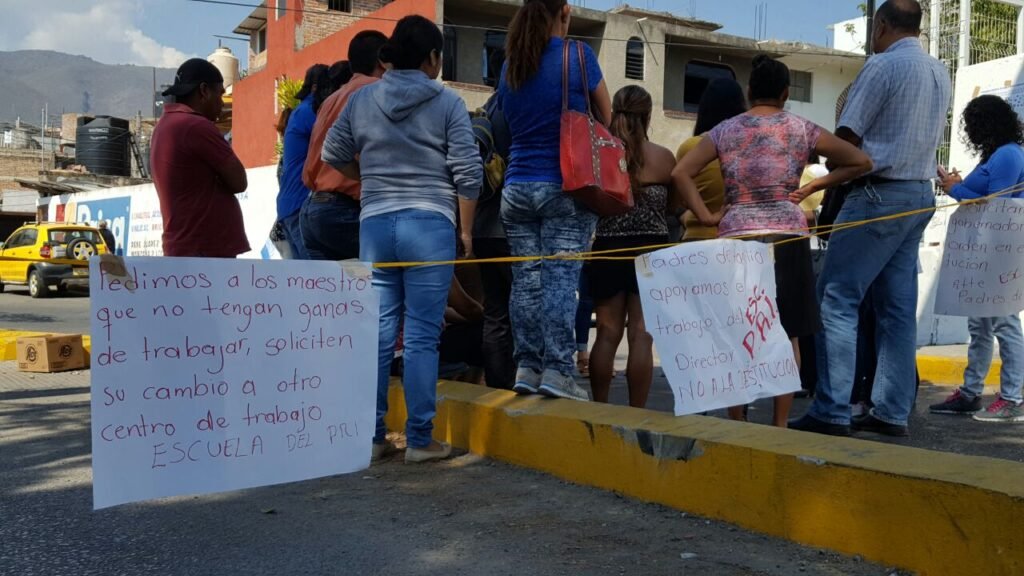 Desde el mes de enero, el personal docente está pidiendo la salida del director, Policarpo Ramírez García, a fin de que asuma el cargo, un maestro que ellos proponen, pero el director también es apoyado por un grupo de padres de familia, lo que ha impedido que el conflicto se resuelva.
