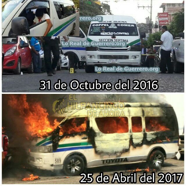 La urvan del transporte público de la ruta Noche Buena-Sección Séptima, con número económico 589, que se incendió supuestamente por un corto circuito en la avenida Juan Ruiz de Alarcón, atrás de la Escuela Secundaria “Raymundo Abarca Alarcón”, es la misma en que el pasado 31 de octubre del 2016 fue ejecutado a balazos su chofer, casi en el mismo lugar.