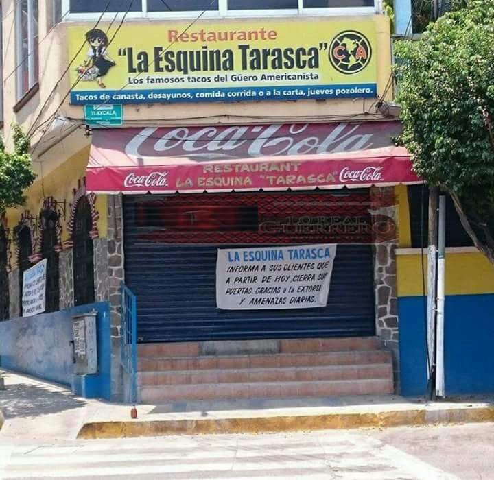 * ‘La Esquina Tarasca”, ubicado en la colonia Progreso, cerró “gracias a la extorsión y amenazas diarias”, informaron sus propietarios