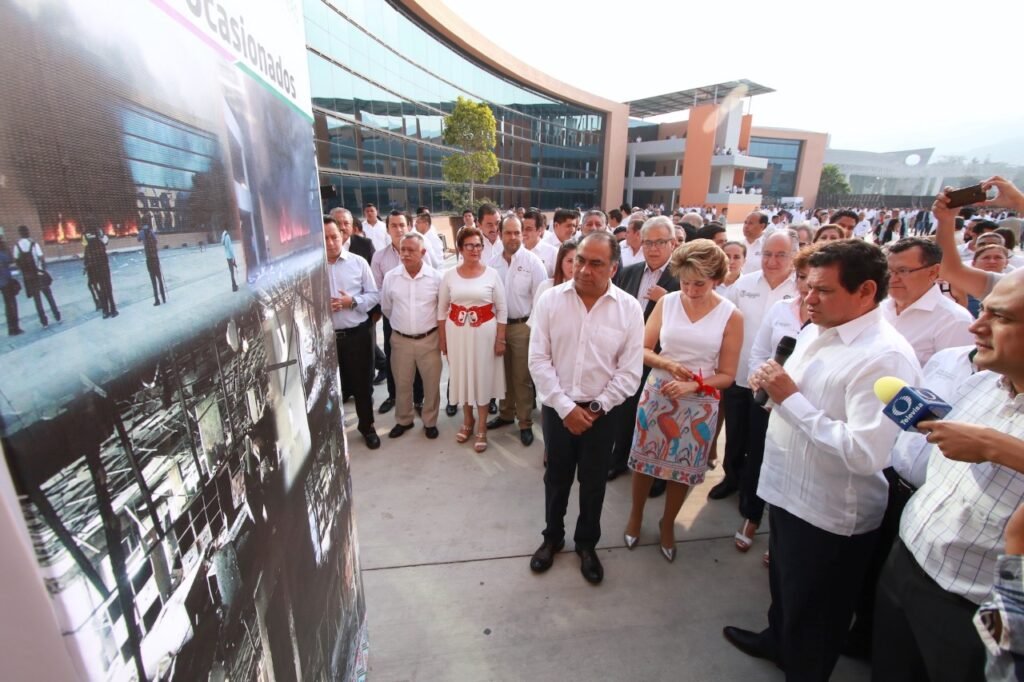 A más de dos años de que resultara siniestrado por las protestas a raíz de los lamentables hechos de Iguala, el gobernador Héctor Astudillo Flores inauguró la rehabilitación del edificio “Tierra Caliente” en el palacio de gobierno, reparación que representó una inversión de 32 millones de pesos.