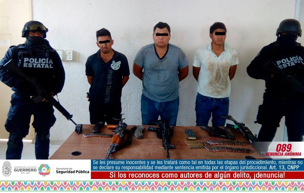 Elementos de la Policía Estatal y del Ejército se enfrentaron a balazos y persiguieron a tres sujetos que conducían una camioneta, logrando detenerlos en la altura de la curva de la comunidad El Tuzal, entre Petatlán y Juluchuca, en la Costa Grande.