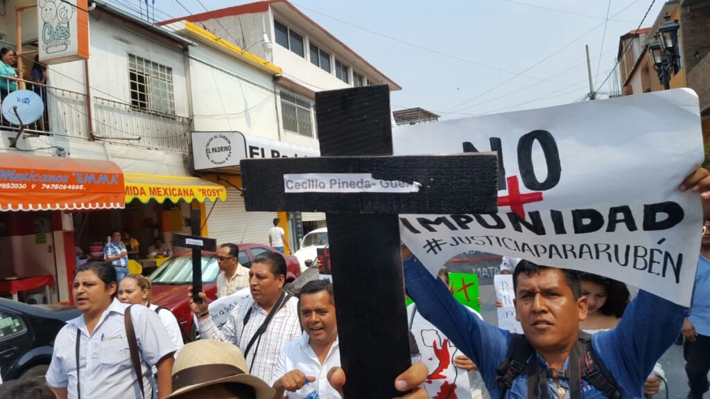 En el trayecto, resonó la exigencia de justicia, respeto a la libertad de expresión y castigo a los responsables del atraco, y se denunció la complicidad de las fuerzas armadas con los grupos de la delincuencia organizada.