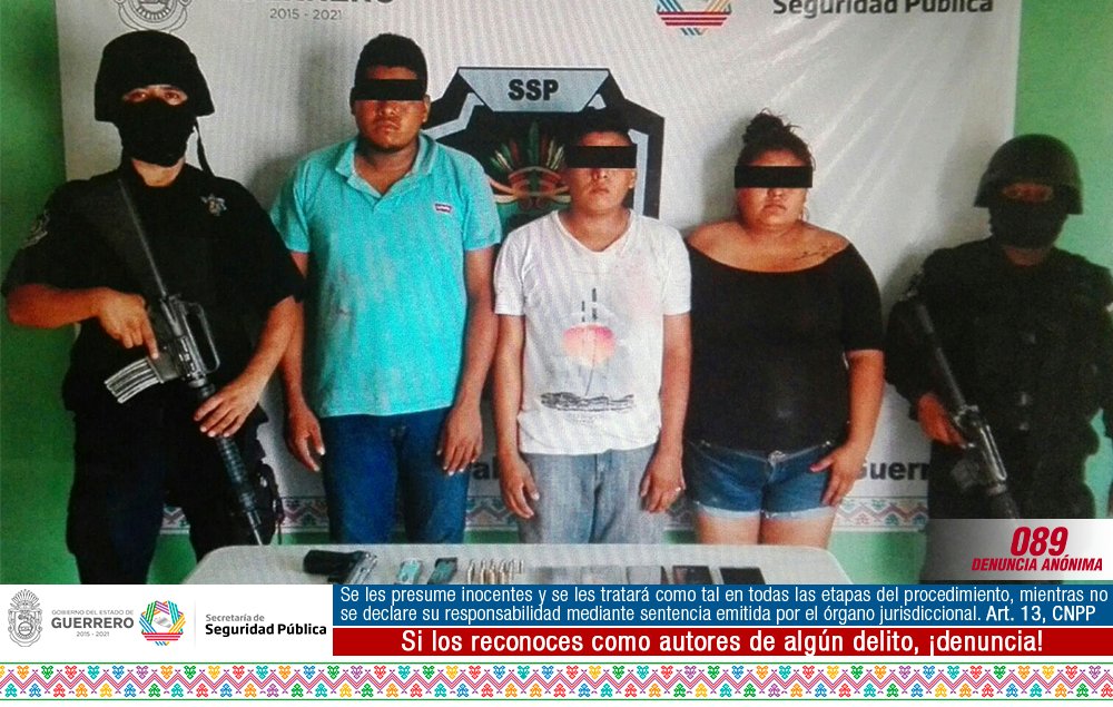 Finalmente dichos sujetos fueron interceptados, deteniendo a Luz Briseida Rosario García, de 24 años, quien se identificó como agente de la PME, con número de empleado 52539, dijo desempeñar funciones operativas y estar adscrita al Sector Centro de Acapulco; en el momento de su detención, la mujer portaba su arma de cargo, una identificación y una placa metálica policial a su nombre; asimismo, con ella detuvieron a Pablo “N” de 25 años; Edwin “N” de 19, Carlos Iván “N” de 18 años y dos menores de edad.