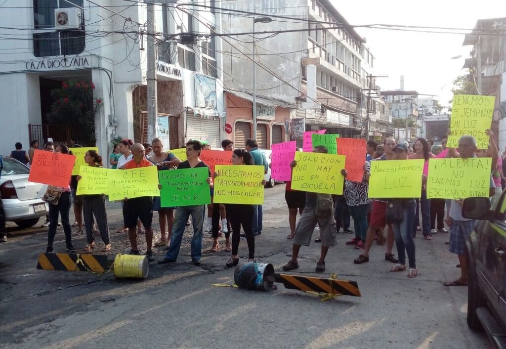 ACAPULCO.— Padres de familia, maestros y alumnos de la Escuela Primaria “Ignacio Manuel Altamirano” bloquearon este miércoles durante una hora la calle Quebrada esquina con José María Iglesias, en el Centro de la ciudad, en protesta porque desde hace tres meses carecen de energía eléctrica en ese plantel.