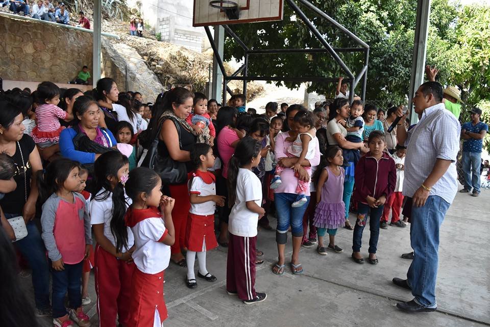 Acompañado por la titular del DIF, Liliana Gutiérrez García, el segundo síndico Esteban García García, regidores y secretarios, el alcalde visitó primero la comunidad de Cuonetzingo, donde entregó el comedor escolar al Jardín de Niños.