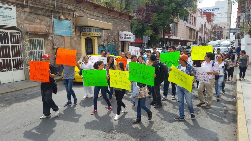 Maestros y estudiantes de la Universidad Autónoma de Guerrero (UAGro), realizaron una marcha vespertina para exigir justicia por el asesinato del estudiante de la licenciatura de Artes, Darwin Raymundo Barrientos Miranda, quien murió acribillado la tarde del miércoles en el bulevar capitalino.