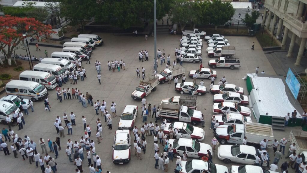 Los inconformes introdujeron unas 30 unidades del servicio urbano y alrededor de 100 taxis, a la plaza “Primer Congreso de Anáhuac”, para exigir una audiencia con el presidente municipal Marco Antonio Leyva Mena.
