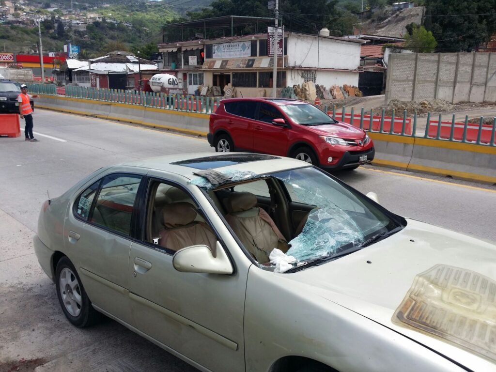 Un joven cayó sobre el parabrisas del vehículo compacto que lo atropelló cuando intentó cruzar los carriles de norte a sur del bulevar Vicente Guerrero, cerca del crucero a Chichihualco, justo frente a una conocida marisquería.