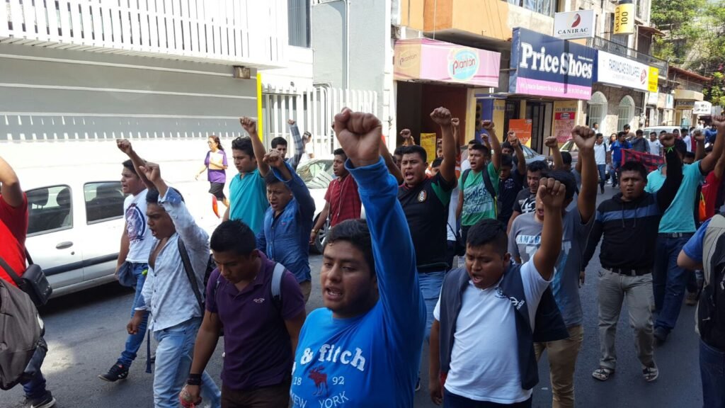 A la movilización se sumaron miembros de la Coordinadora Estatal de los Trabajadores de la Educación en Guerrero (CETEG) y del Centro de Derechos Humanos “José María Morelos y Pavón”, para reprobar la agresión a los estudiantes.